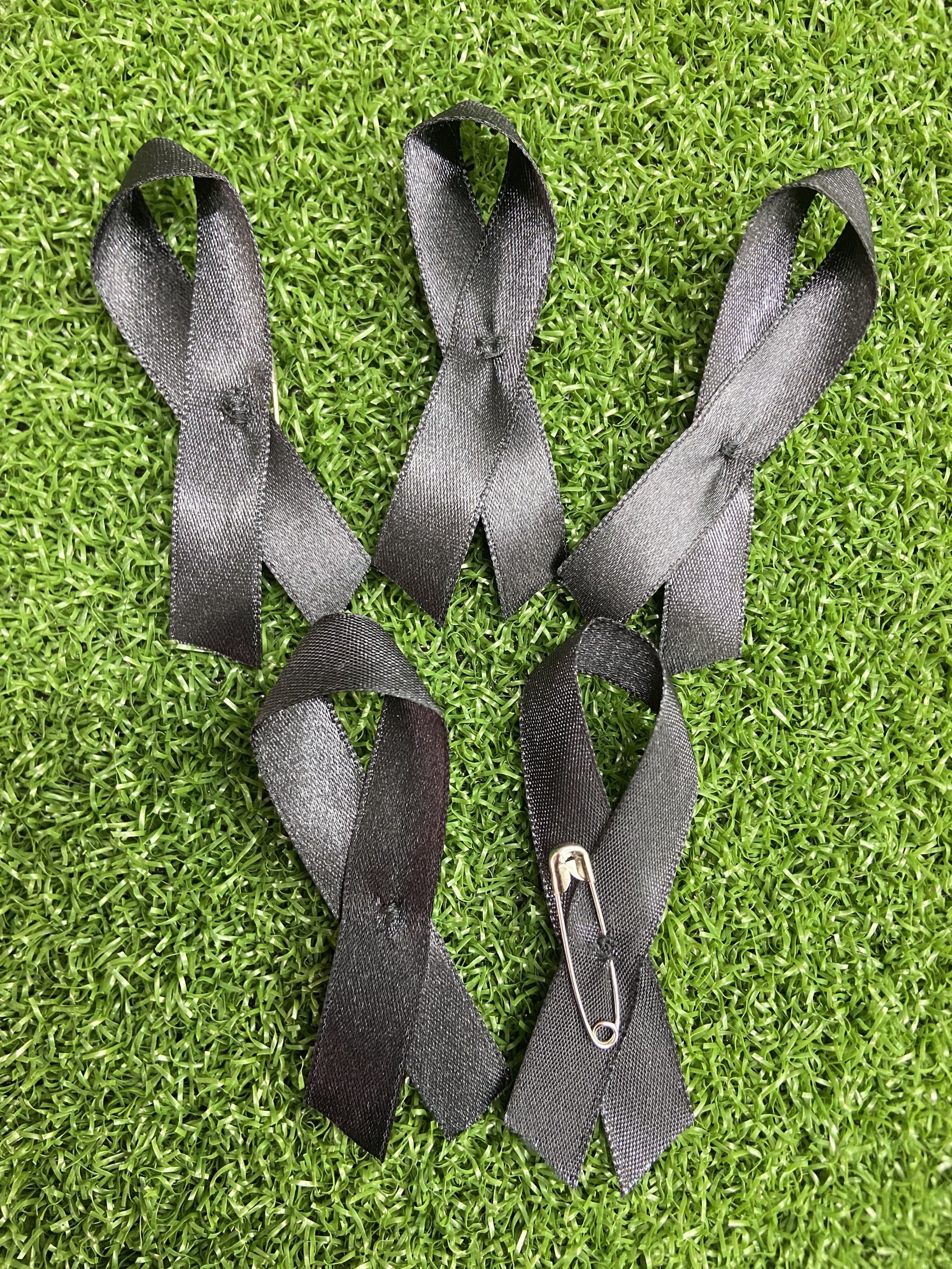 ทำผ้าลิบบิ้นอย่างดี พร้อมเข็มกลัด สื่อถึงความอาลัย