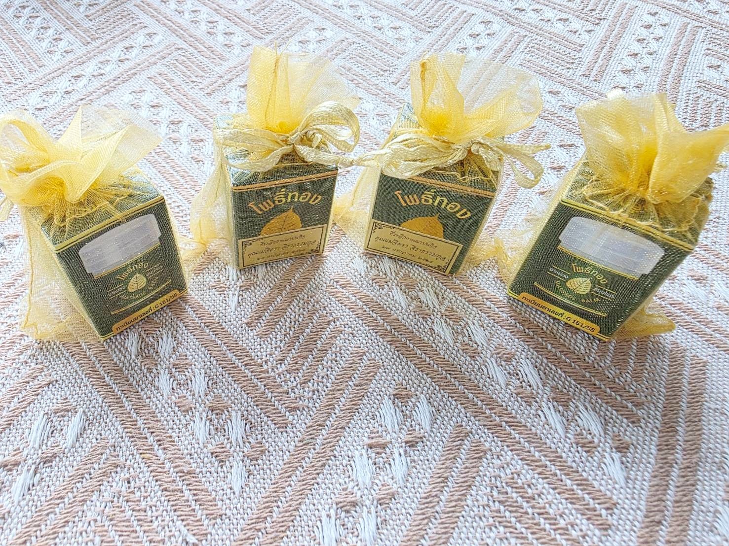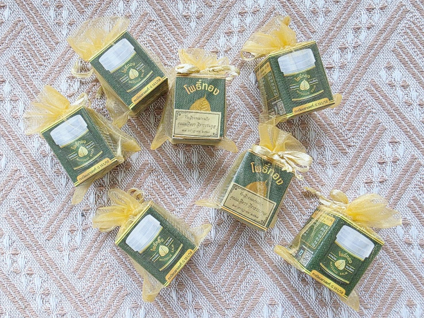 ยาหม่องโพธิ์ทอง ของชำร่วยงานศพยาหม่องโพธิ์ทองตลับพลาสติก พร้อมใส่ถุงผ้าแพ็คเกจยาหม่องโพธิ์ทอง หอมเย็น แพ็คเกจใส่ถุงผ้าสวย สนใจ ยาหม่องสมุนไพรไทยโทร 086-909-9921
